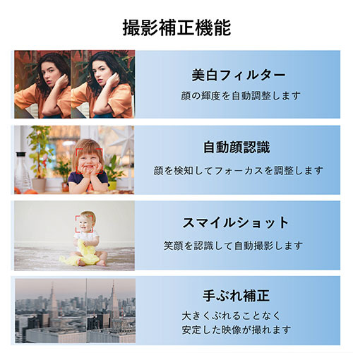 ・手ぶれ補正…大きくぶれることなく安定した映像が撮れます