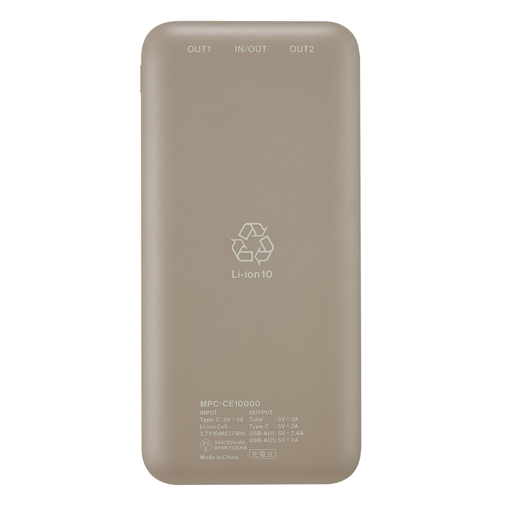 モバイルバッテリー 薄型大容量 10000mAh MPC-CE10000 BE 付属ケーブル(20cm) ベージュ