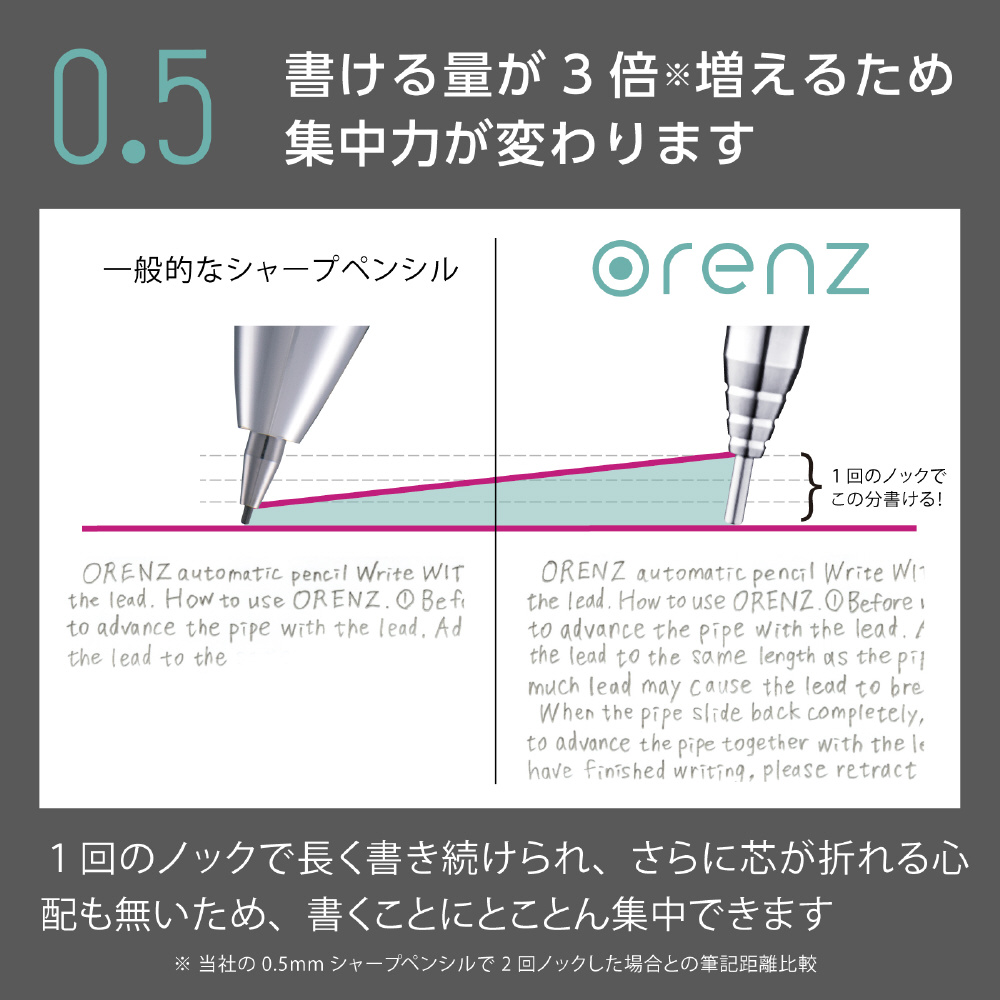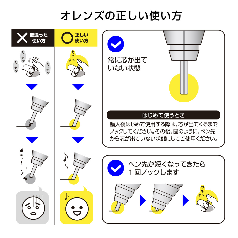オレンズとは2014年に折れないシャープペンの先駆けとして発売し、シリーズ累計販売本数1,500万本(2023年11月現在)を超えるヒット商品です。