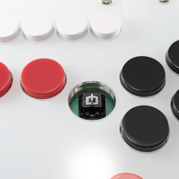キーボード用のメカニカルスイッチを採用した、コンパクトなレバーレスコントローラーの『FightBox B1』は、より高速な入力を可能にするため、日本仕様としてCherry MXスイッチの中で最速モデルの「Cherry MX Speed Sliver」スイッチを搭載しています。アクチュエーションポイントが1.2mmに設定されたSpeed Silverスイッチを搭載することで、一般的なメカニカルスイッチと比較して、優れた入力速度を実現します。