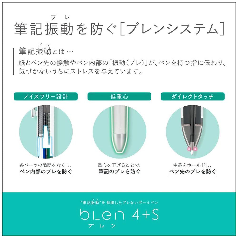 筆記時に生じる振動を制御したブレないボールペンの「ブレン」シリーズから4色ボールペン+シャープペンが1本にまとまった5機能タイプのボールペンが登場!