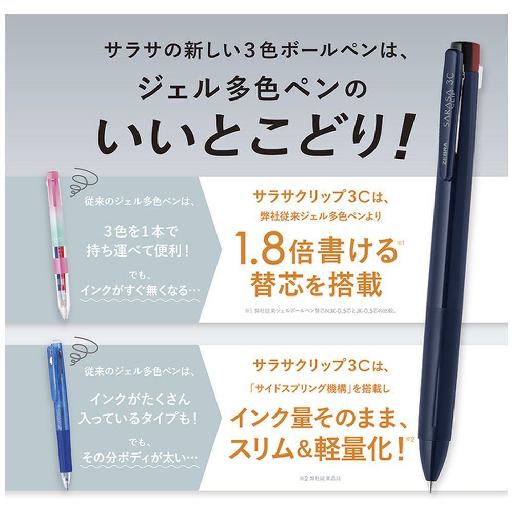 さらさらくっきり、きれいにまとまる。サラサクリップの3色ペン(ボール径0.5mm)