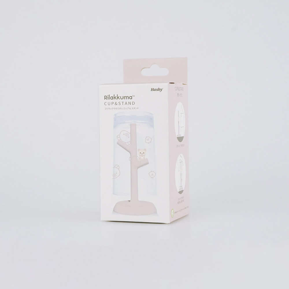 コップを伏せるとキャラクターの世界観が広がるコリラックマのコップとスタンドのセットです。