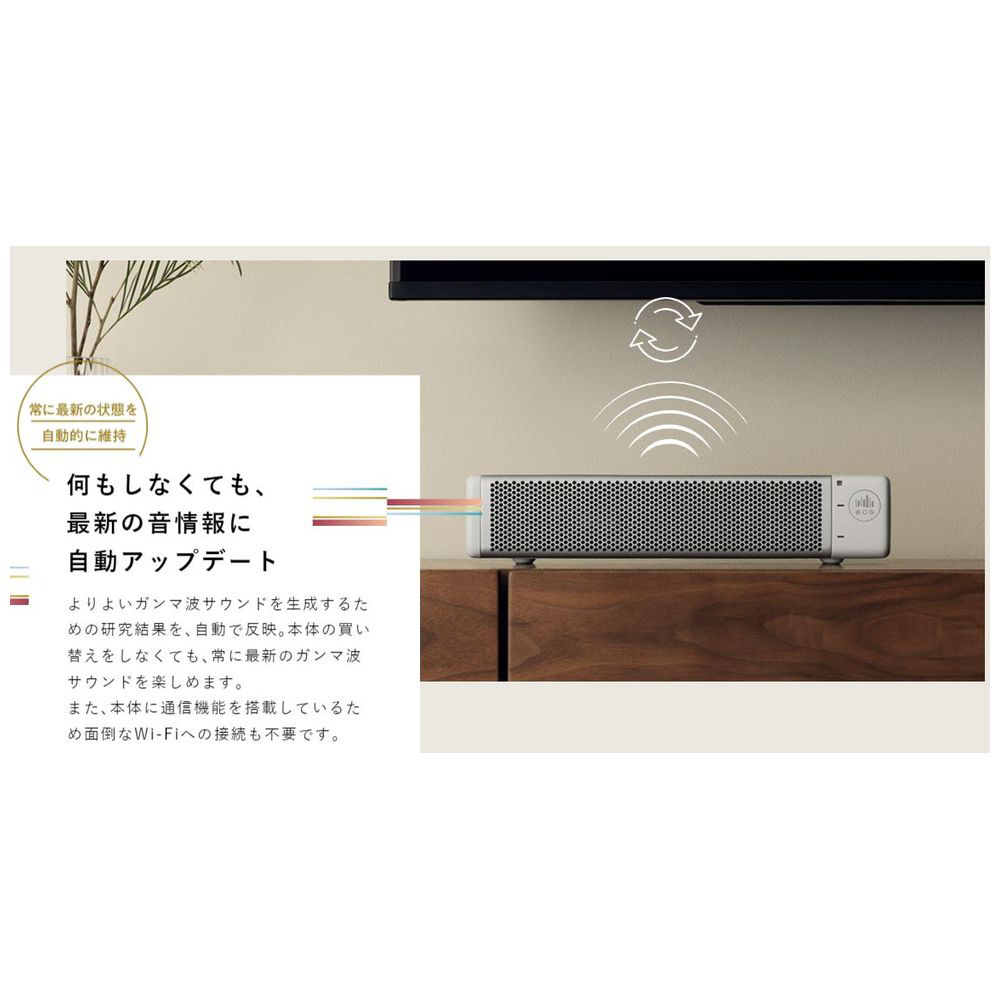 いつものTVの音を話題の「40Hz」に変調できる、ガンマ波変調技術搭載スピーカー。毎日の音刺激で、あなたの毎日を支えます。