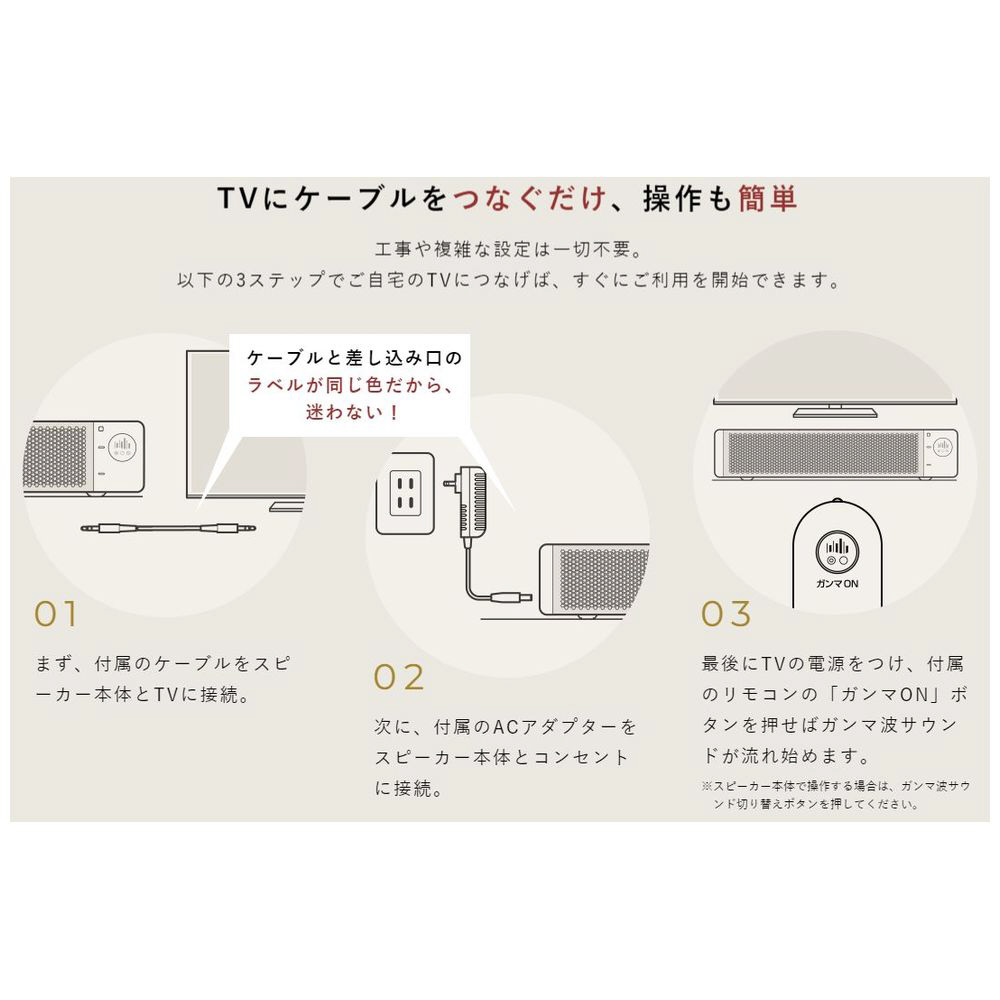 世界初の特許技術「ガンマ波変調技術」により、TVの音を40Hzに変調します。2023年グッドデザイン賞受賞