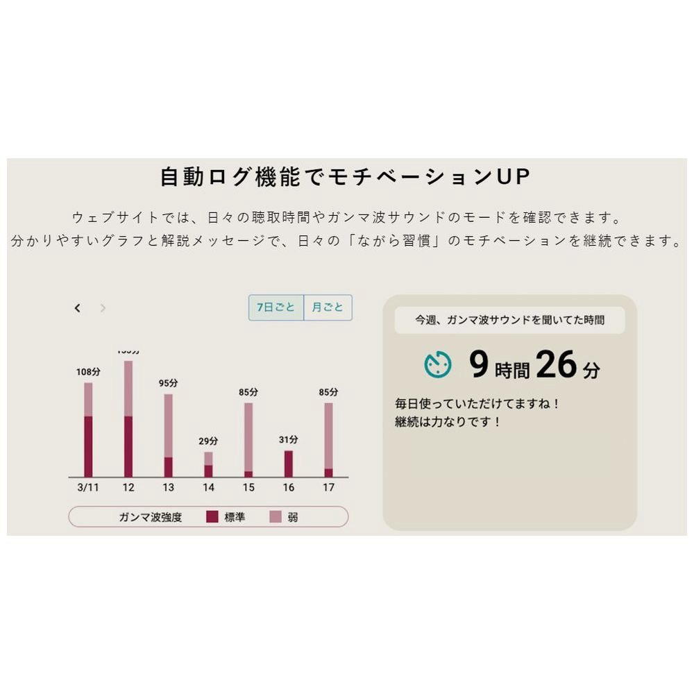 「今月はどのくらいの時間、ガンマ波サウンドを聴いたかな?」