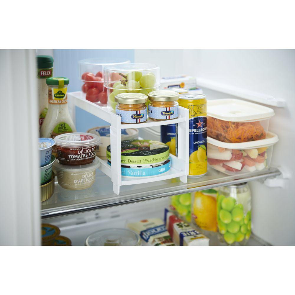 冷蔵庫内をラクラク整理。調理の時短や節約にも。空きスペースにもしっかり収納できます。重ねにくいものもラクラク収納。キッチン・サニタリー・デスクまわりなど、様々な生活シーンに合わせて使えます。