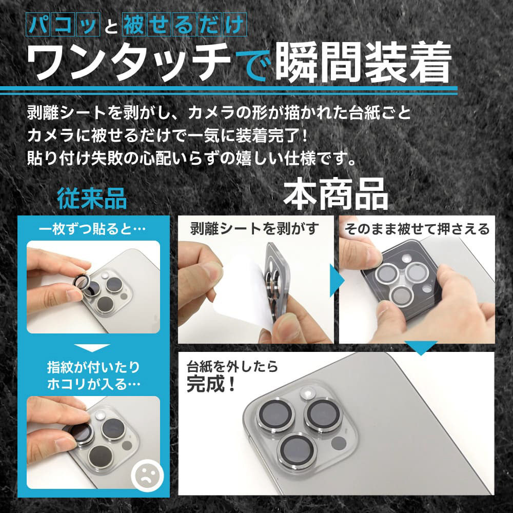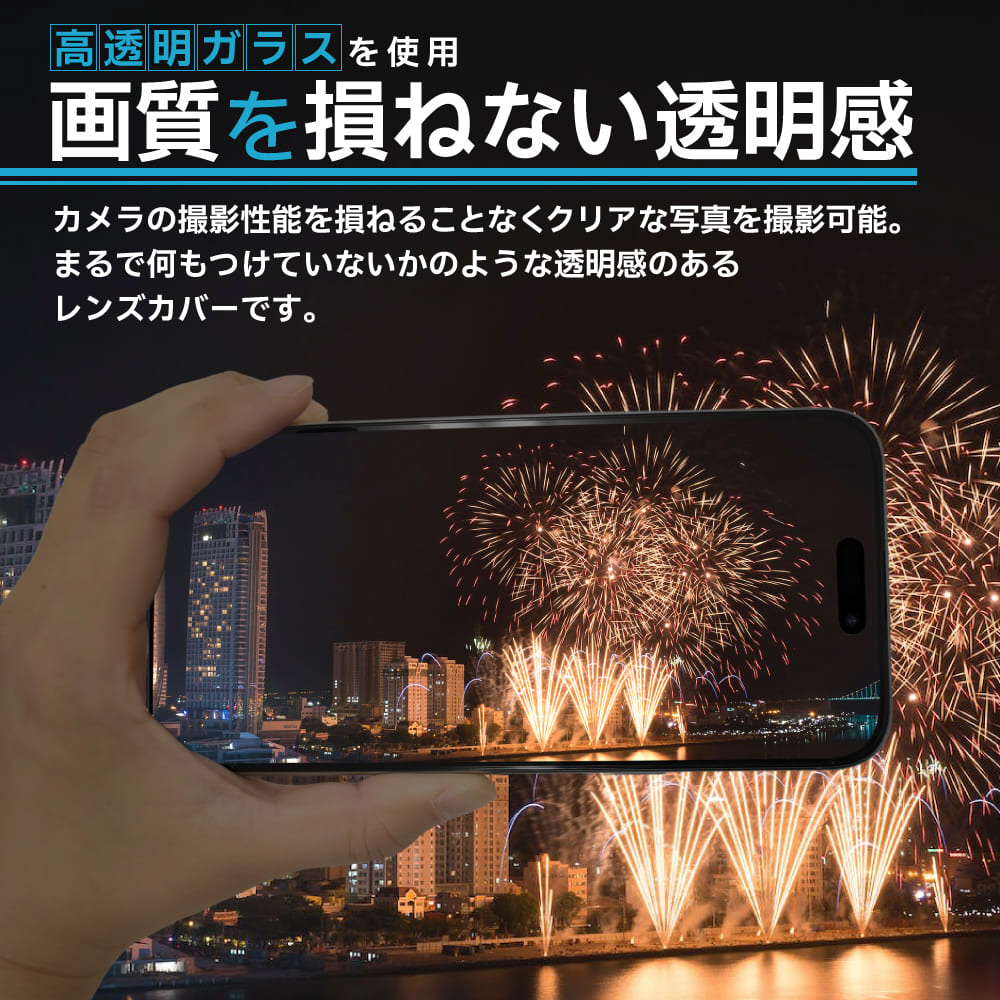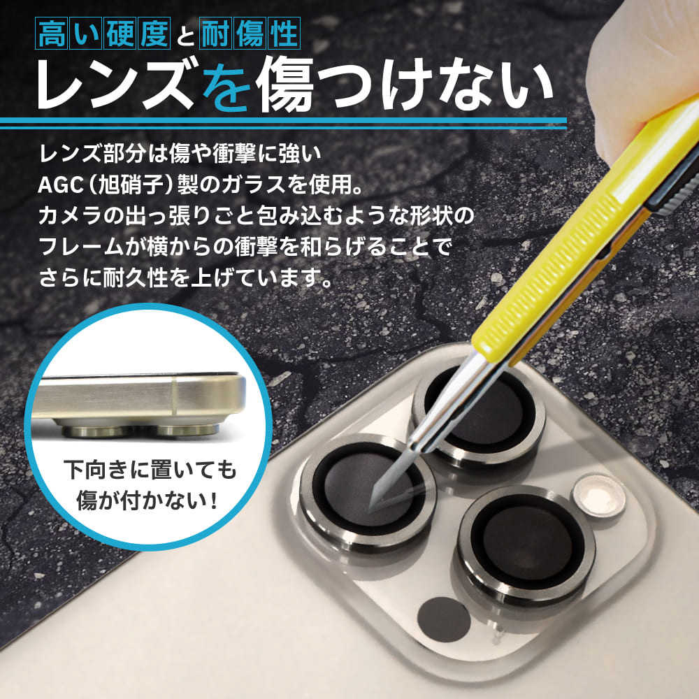 AGC旭硝子社製ガラスを採用した背面カメラ部専用ガラスフィルム万が一の場合でもレンズ部分への衝撃を最小限に抑えます