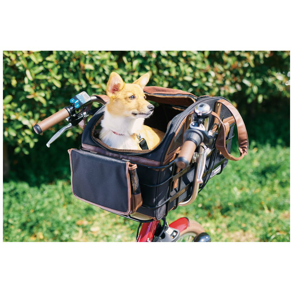 バッグは着脱式で自転車のカゴから取り外しができます。後方はペットの乗せ下ろしがスムーズにできるよう開口部が大きく開き、前方には小窓がありペットが顔を出して風を感じて走ることができます。