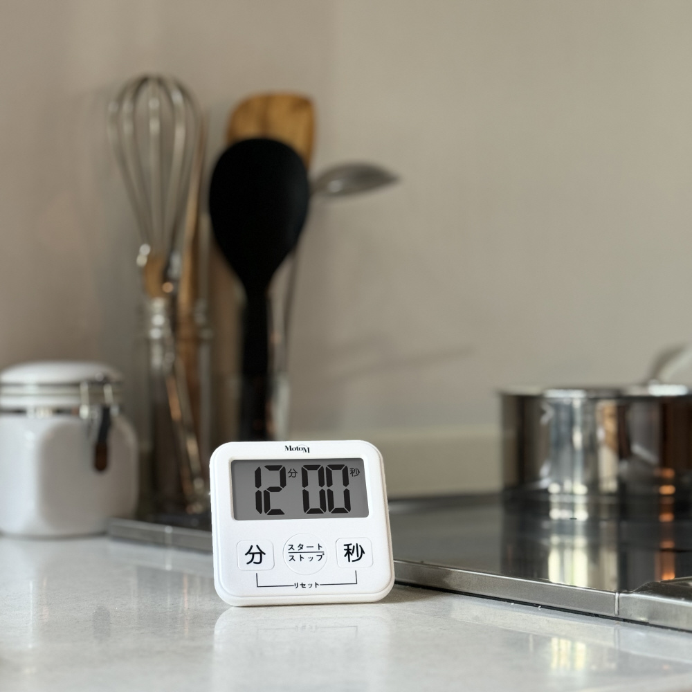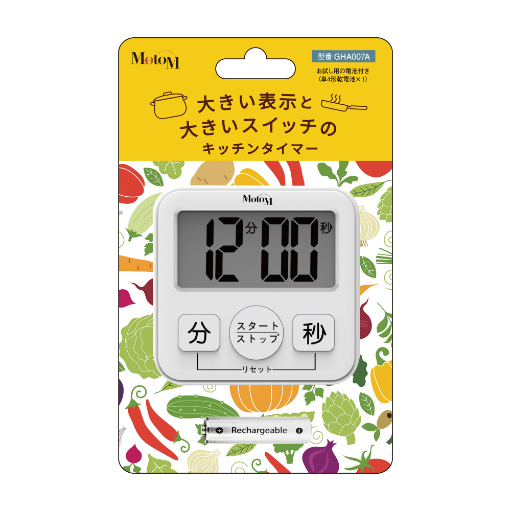 大きい表示と大きいスイッチのキッチンタイマー MotoM ホワイト GHA007W