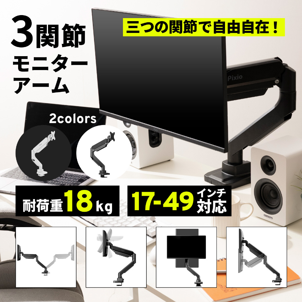 また、クランプ固定とグロメット固定の二種類の固定方法に対応しているので、場所を選ばずにスムーズに設置できます。ゲームだけではく、ビジネスや学業での利用にもオススメのモニターアームです。