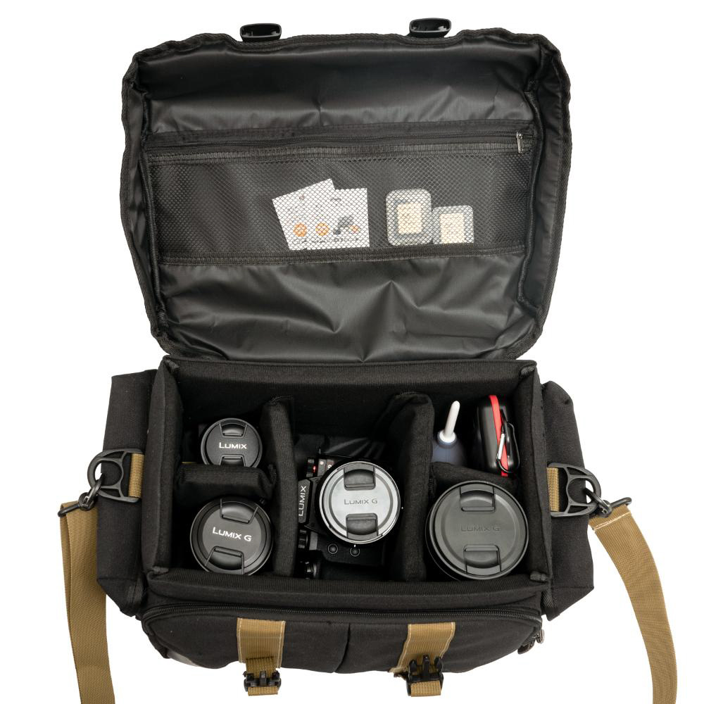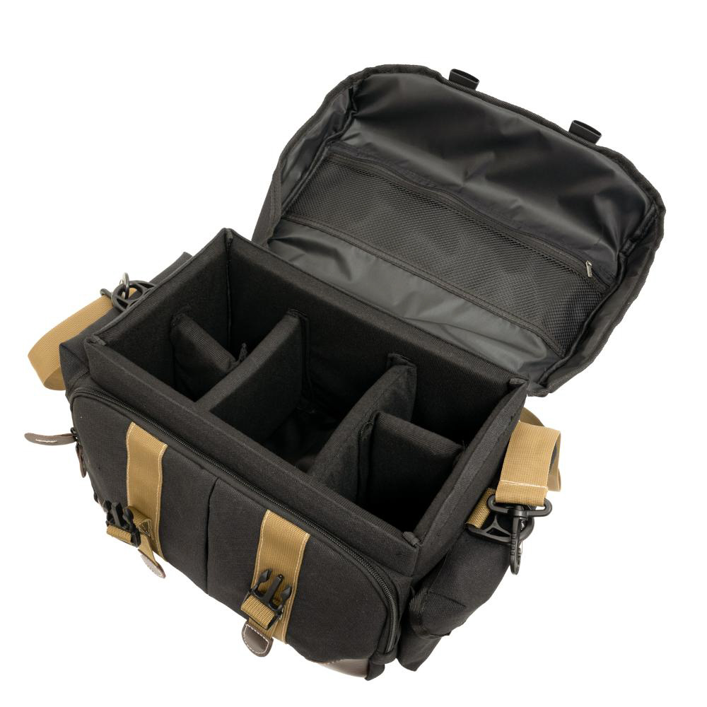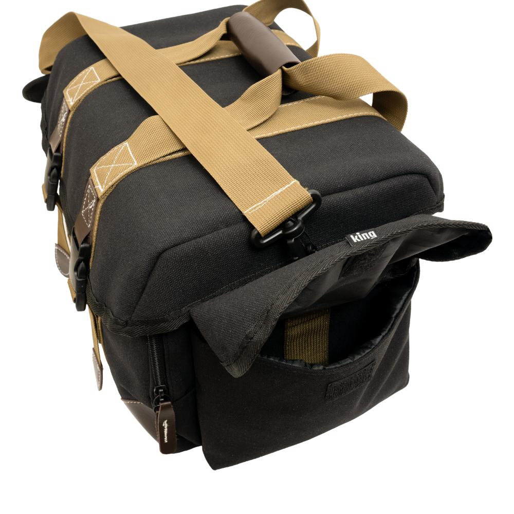 King K-FST-Lは、キャンバス素材を使用したスタンダードタイプのカメラバッグです。ほどよいクッション性でカメラをしっかり保護します。メインの収納スペースには中仕切りが大小2枚ずつあり、機材に合わせて位置を調整可能。バッグ上部の持ち手を掴んでの持ち運びのほか、付属のショルダーベルトをつけてショルダーバッグとしても使用できます。