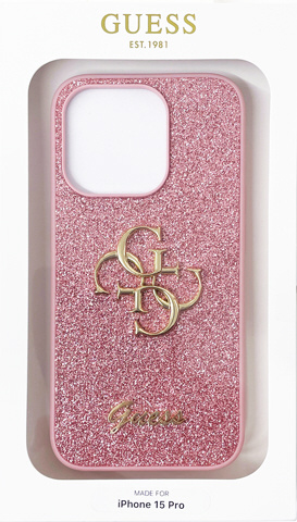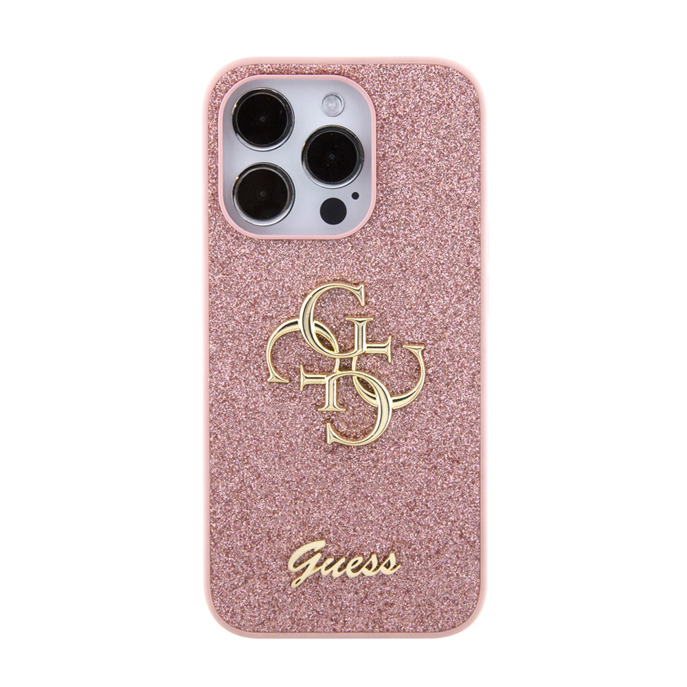 GUESS(ゲス) iPhone15 Pro用 グリッター 背面ケース ピンク GUHCP15LHG4SGP