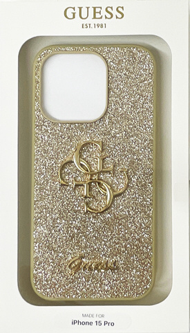 GUESS(ゲス) iPhone15用 グリッター 背面ケース ゴールド GUHCP15SHG4SGD