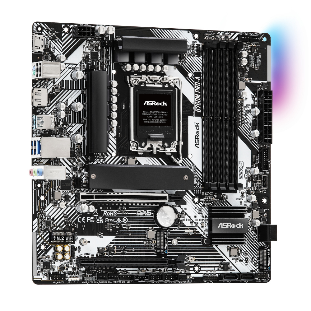 Intel B760チップセット搭載。DDR5メモリに対応し高品質部品を採用するmicroATXマザーボード