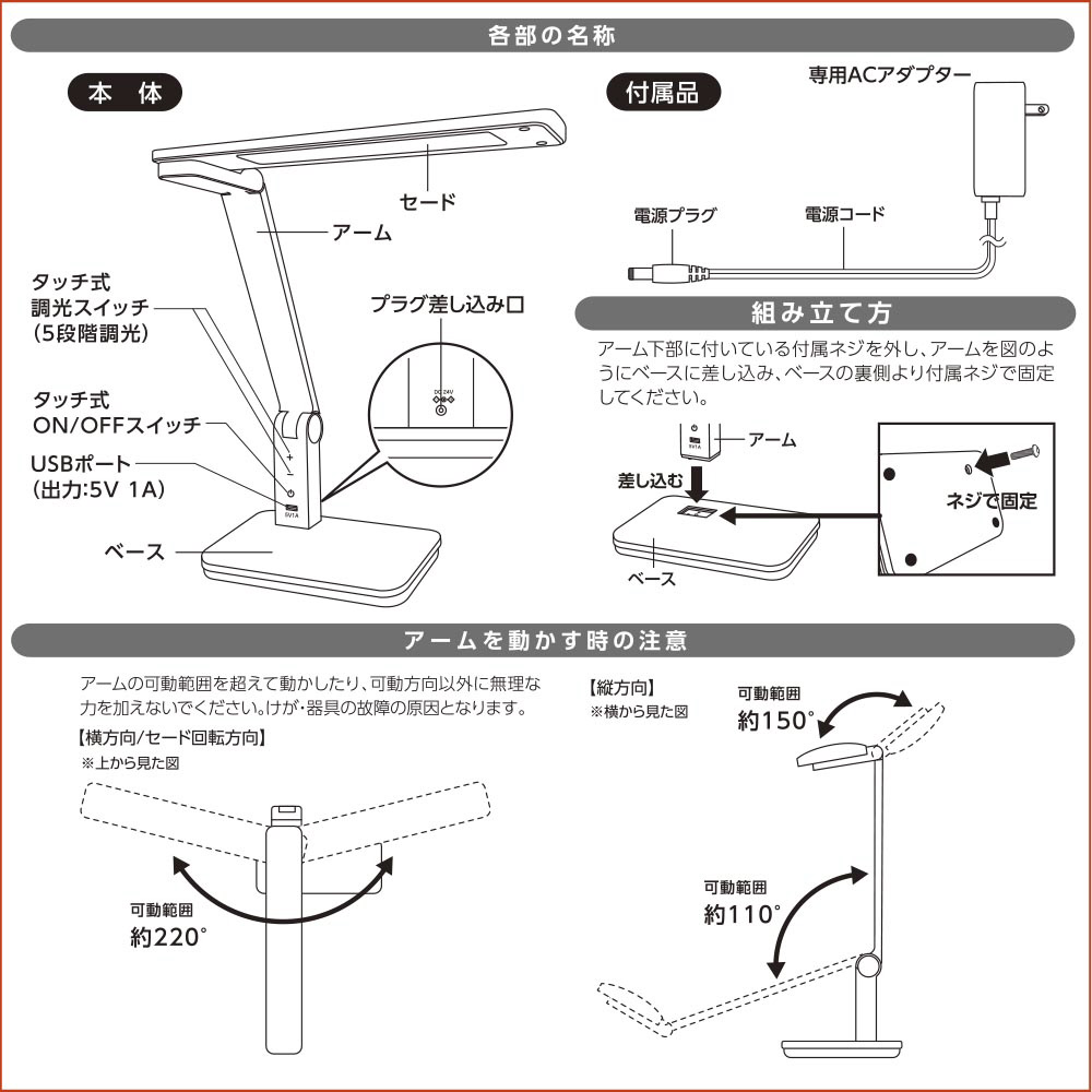 5段階に明るさが調節できるLEDデスクライト