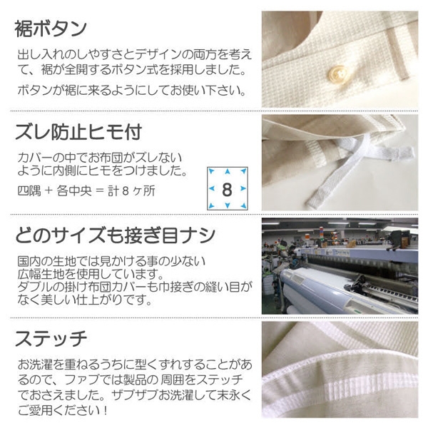 白い部分はワッフル織りベージュの部分はツイル織りと織り方を変えた贅沢なストライプ柄です。