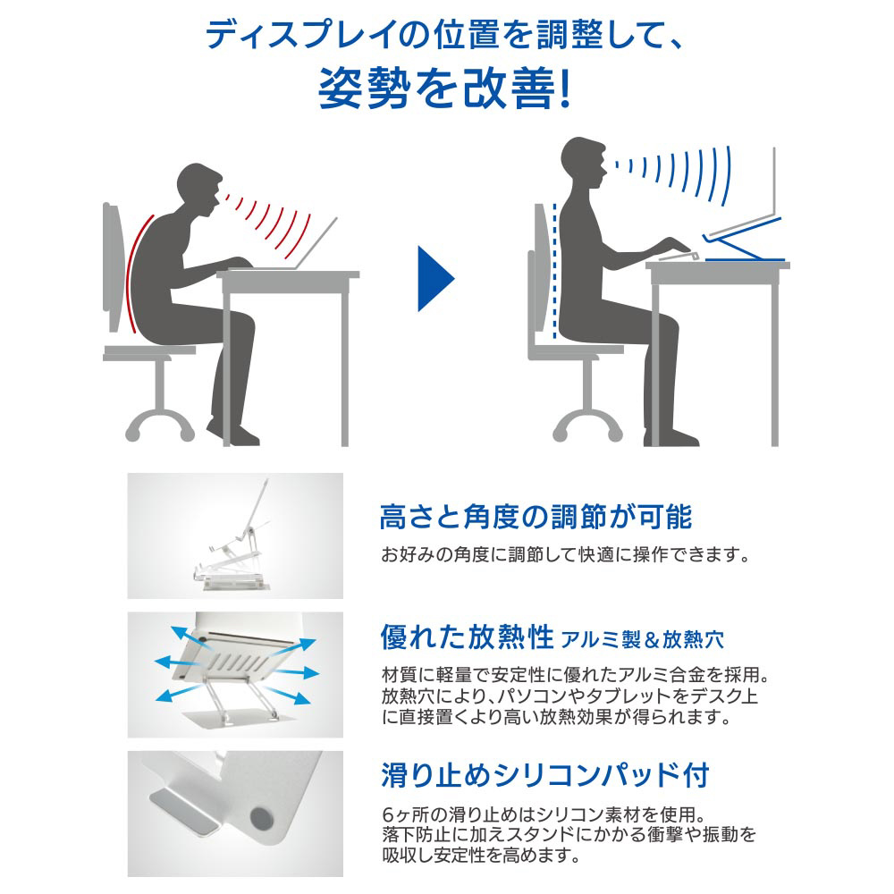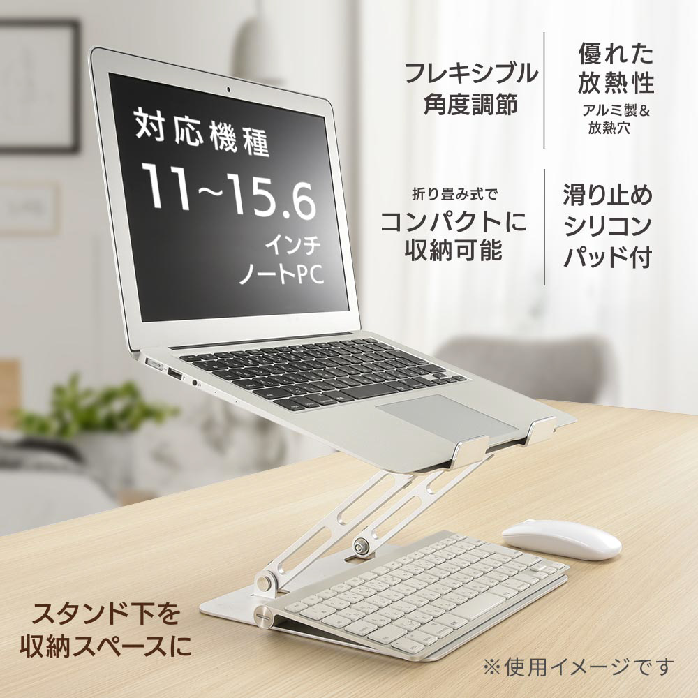 ノートパソコンスタンド [11〜15.6インチ] 折り畳み式 PCGEAR シルバー OA-S02R-S
