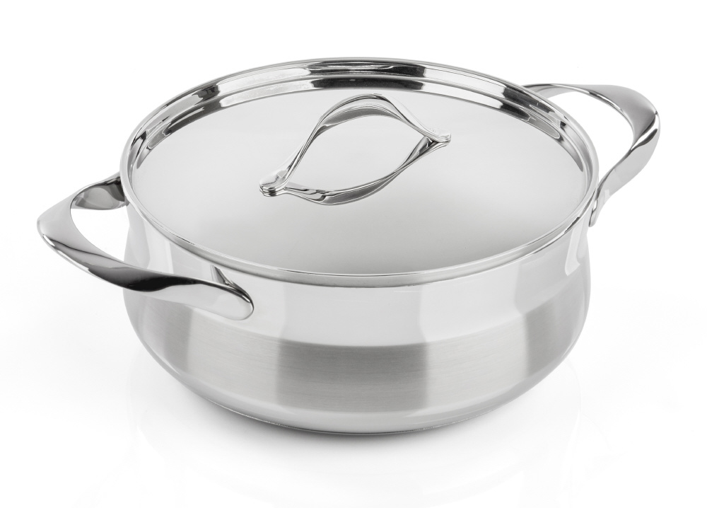 高さの低いこの鍋は、全体に熱が回りやすく、食材にま んべんなく熱を加える料理に最適です。