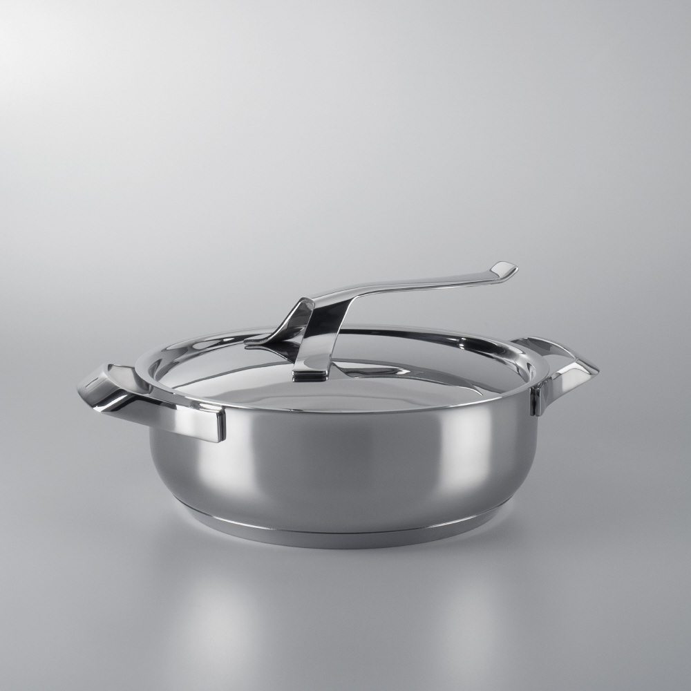 高さの低いこの鍋は、全体に熱が回りやすく、食材にま んべんなく熱を加える料理に最適です。