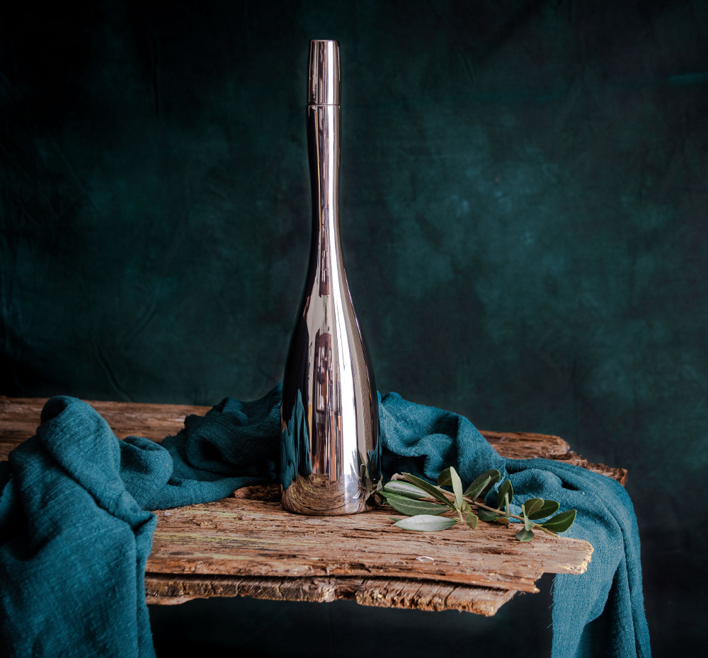「オリー」は洗練されたオーガニックなデザインのオイル容器で、ボトルの上部を細くすることで製品に軽さを与えています。また、大きなサイズも特徴であり、キッチンの主要なアイテムとなり、テーブル上ではアートピースのような存在となります。キャップはオイルのこぼれを防止するようにデザインされています。