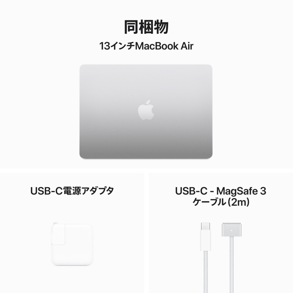 13インチMacBook Air: 8コアCPUと8コアGPUを搭載したApple M3チップ, 8GB, 256GB SSD ‐ シルバー MRXQ3J/A [13.6型 /Mac OS /Apple M3 /メモリ:8GB /SSD:256GB /日本語版キーボード /2024年3月] 【sof001】