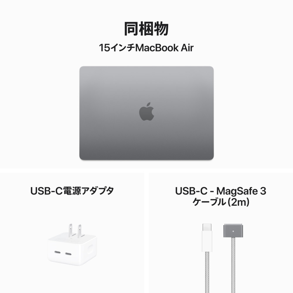 15インチMacBook Air: 8コアCPUと10コアGPUを搭載したApple M3チップ, 8GB, 512GB SSD ‐ スペースグレイ MRYN3J/A