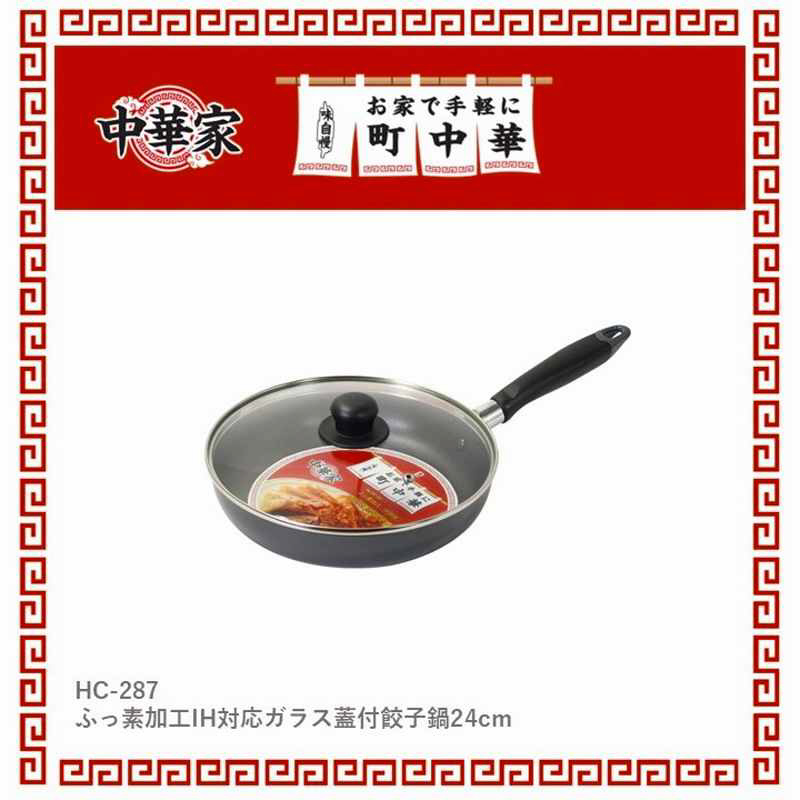 中華家 ふっ素加工IH対応ガラス蓋付餃子鍋24cm HC-0287