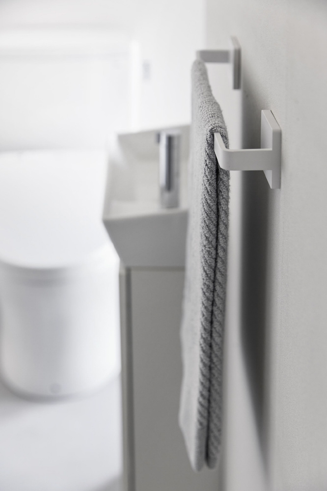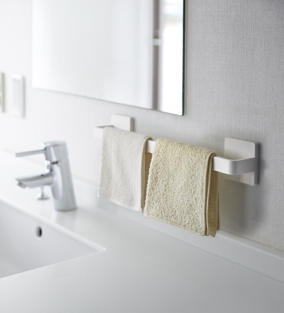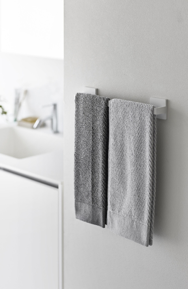 フェイスタオル2枚を並べて掛けられて、家族間でのタオルの使い分けに便利。