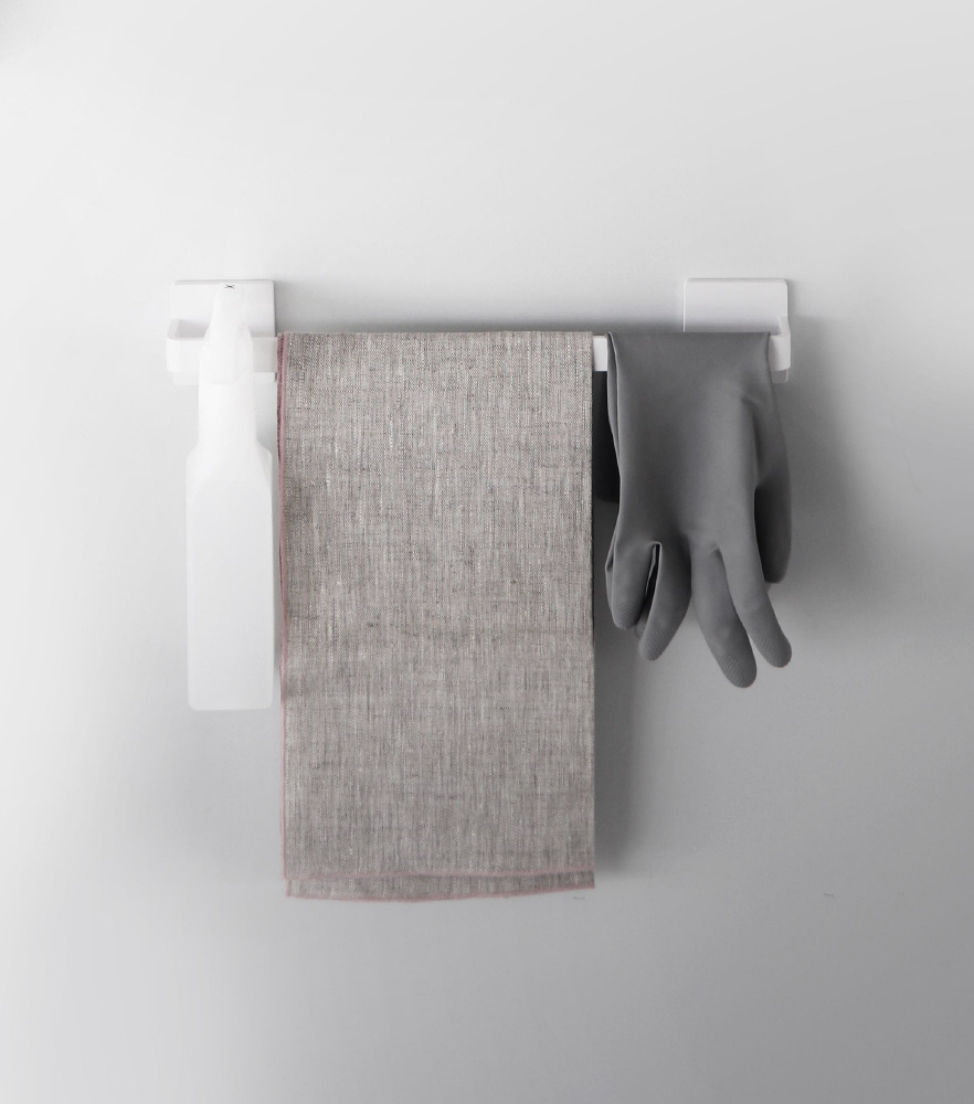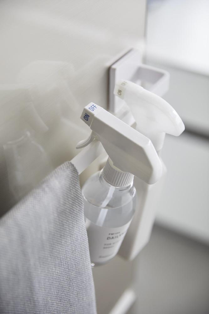 手袋やスプレーボトルなど掃除道具の引っ掛け収納にも。