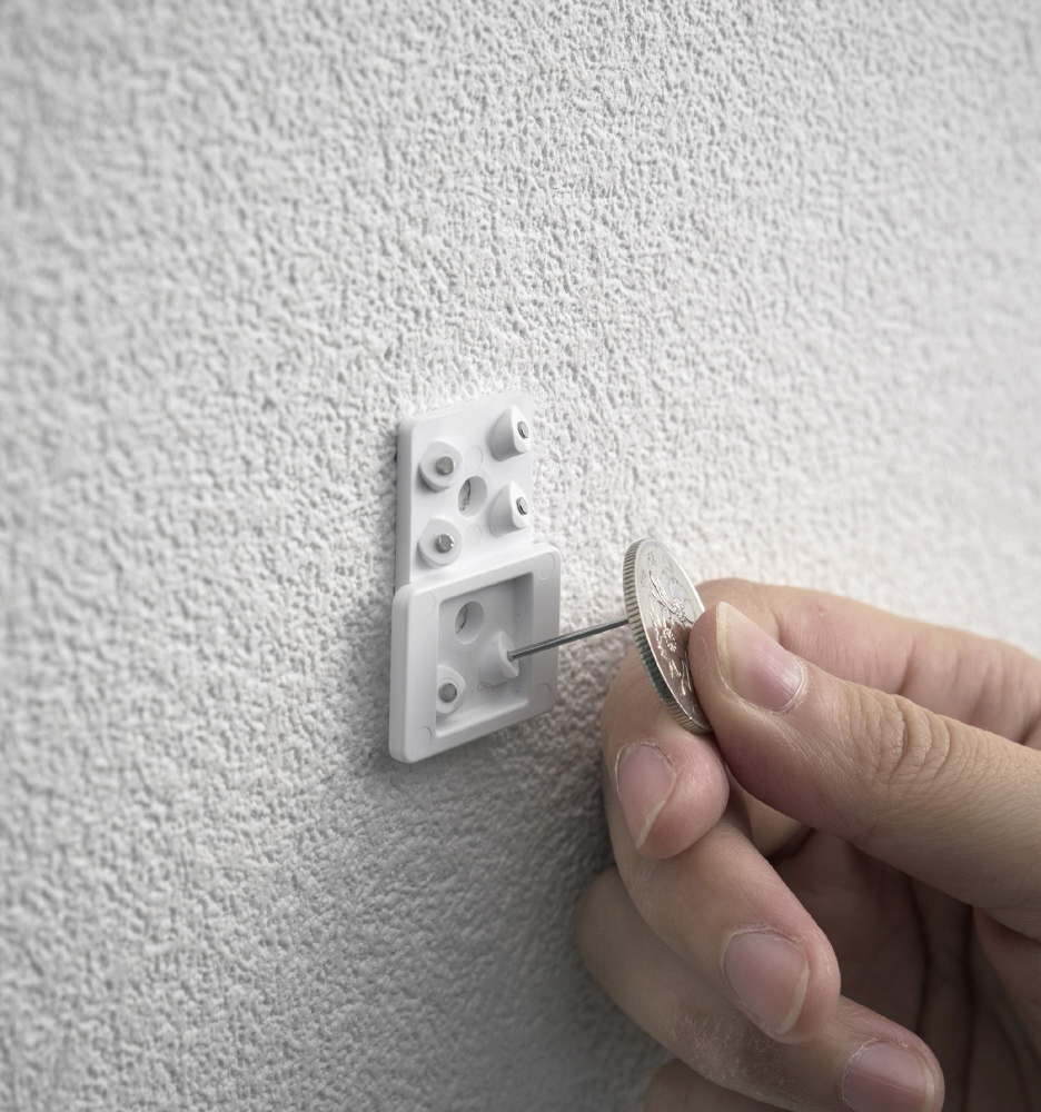 設置穴が目立たない石こうボードピンを使って壁に設置します。