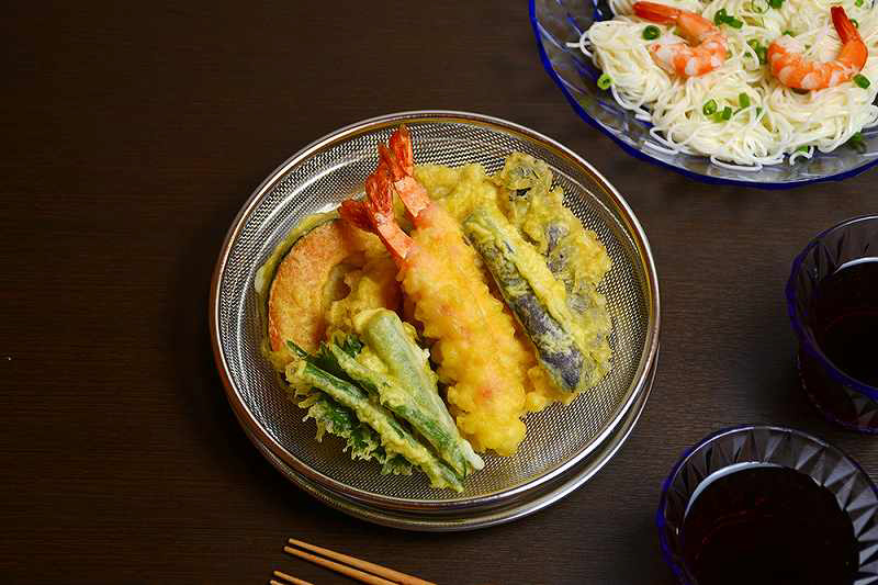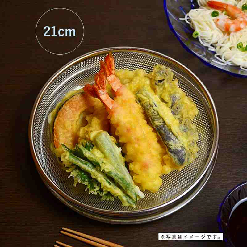 涼をいただく涼味家シリーズ夏場のそうめんに大活躍!ザルとトレーの便利なセット!そうめん・そばなどの水切りや、天ぷら・フライなどの油切りに。そのまま食卓へ並べます。