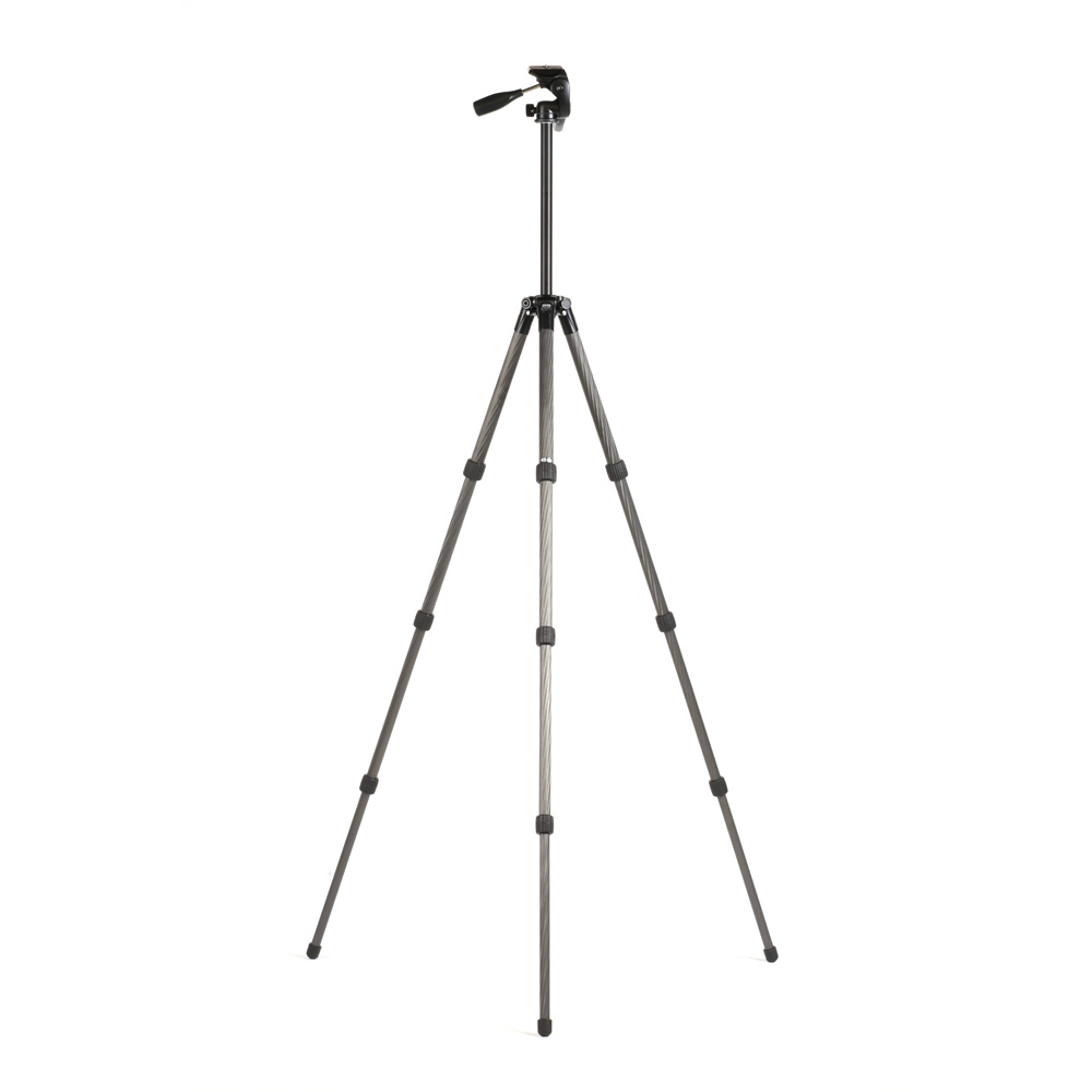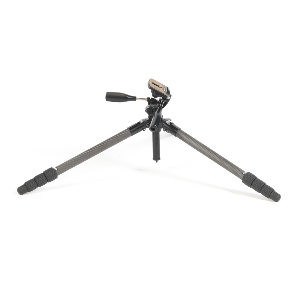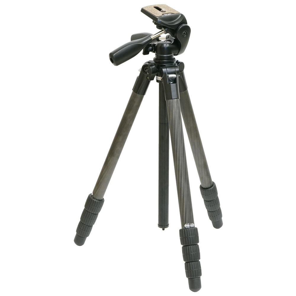 「ハライチロック」式開脚機構で操作性を向上した、28mm径の太さで短く運べる4段カーボン三脚