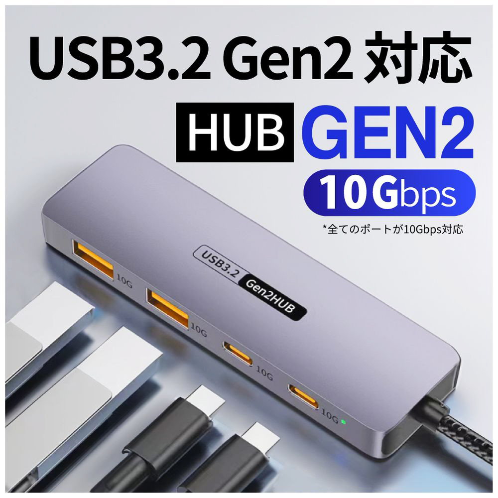 GEN2-HUB4 USB-C → USB-C+USB-A 変換ハブ [バスパワー /4ポート /USB 3.2 Gen2対応]