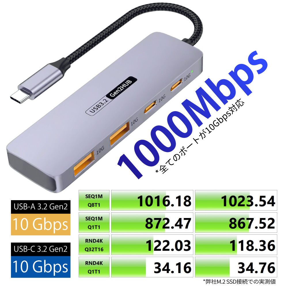 4つのUSBポート全てが3.2 Gen2(10Gbps)のスピードに対応