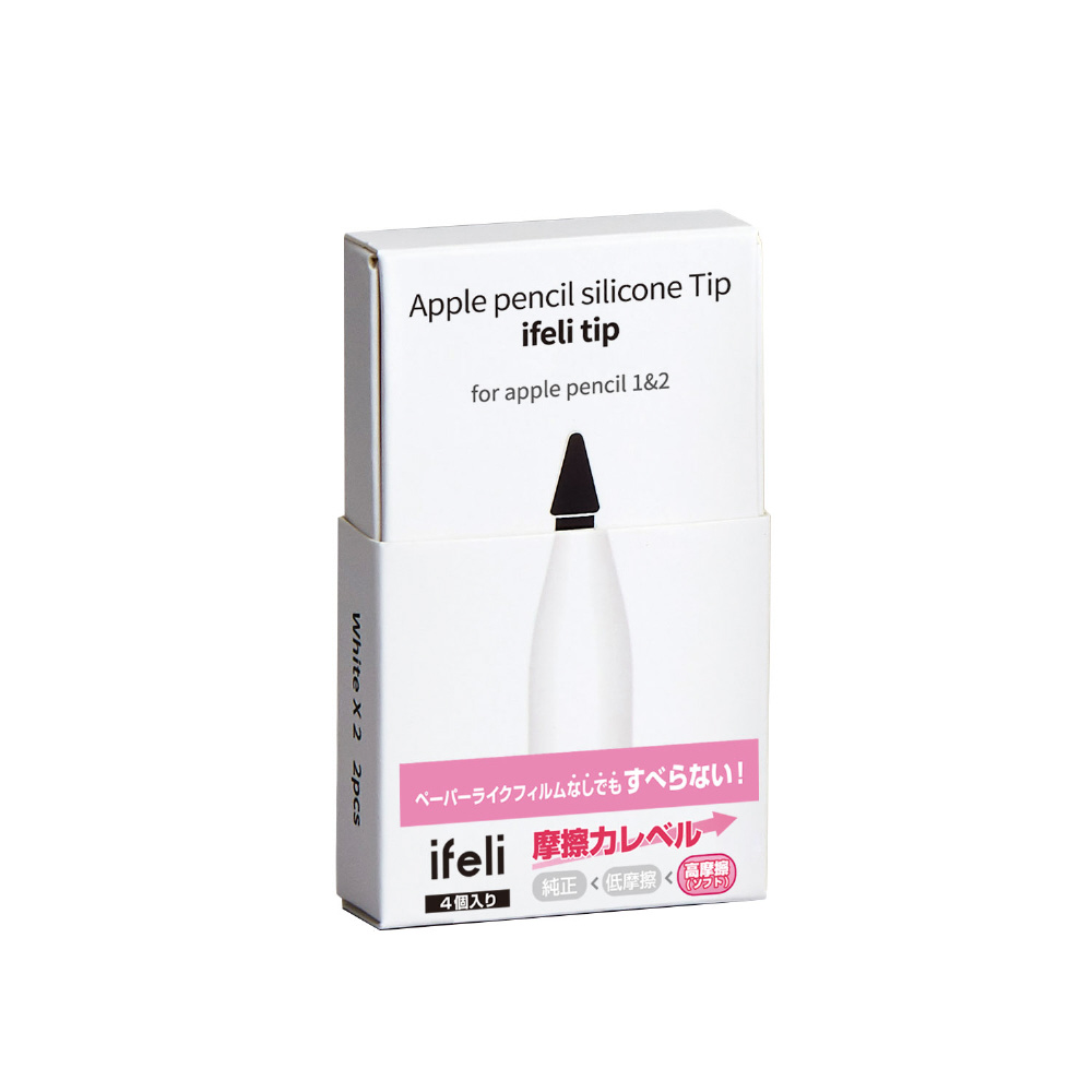 チップとシリコンカバーを一体化することで摩擦力を高めたApplePencilの交換用チップです。ApplePencilのペン先として取り付けることで適度に引っ掛かる摩擦力が得られ、ペーパーライクフィルムなどを使用していないiPadのガラス面でも、ブレのないしっかりした書き味を楽しめます。