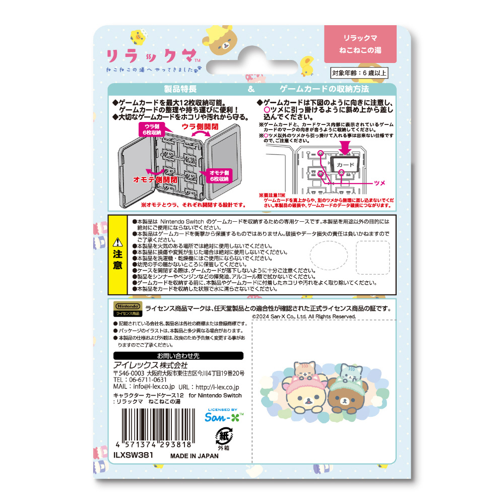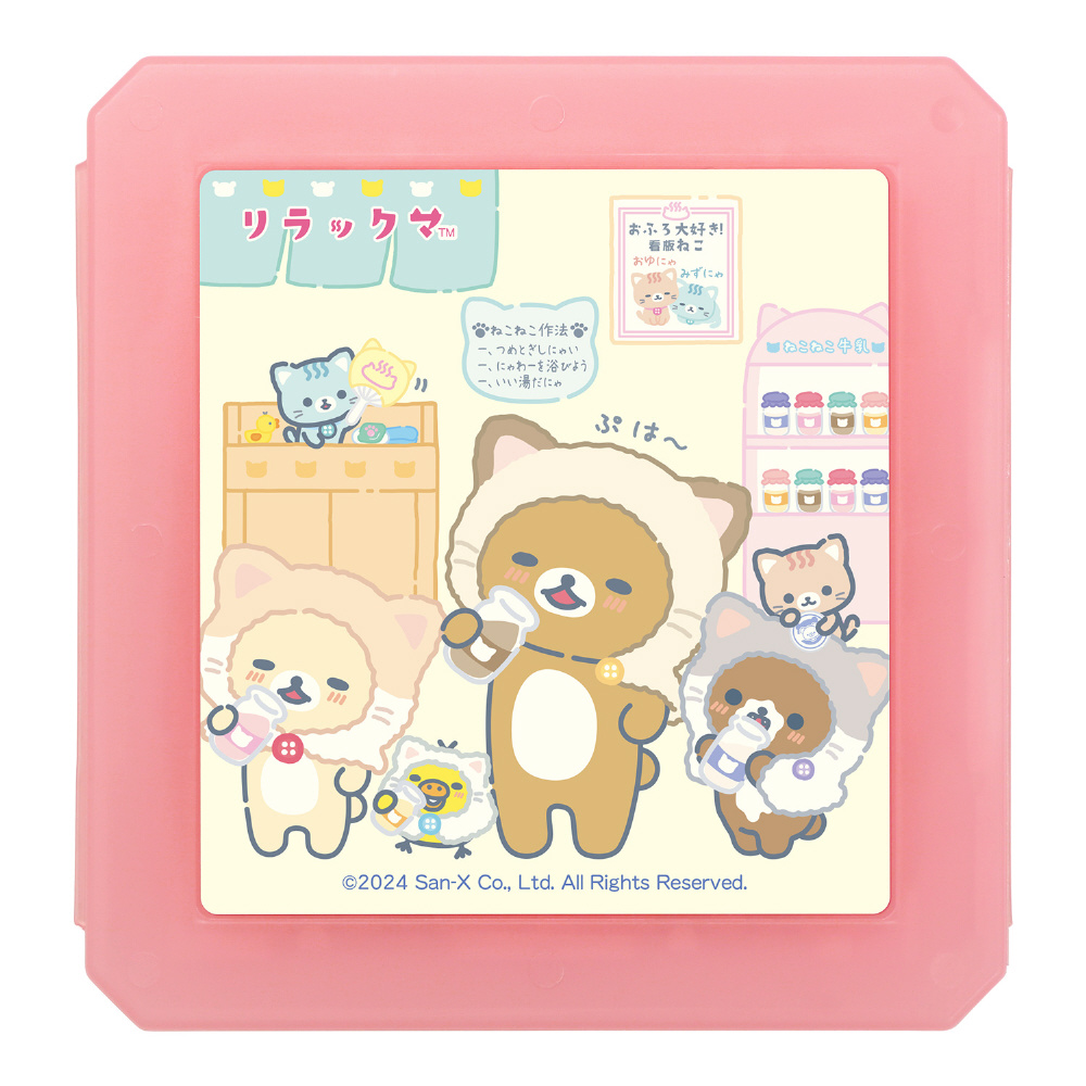 San-Xの人気キャラクターでかわいい「リラックマ(ねこねこの湯)」をあしらったニンテンドーSWITCH用ゲームカードを同時に最大合計で12枚収納できるスリムなカードケースです。