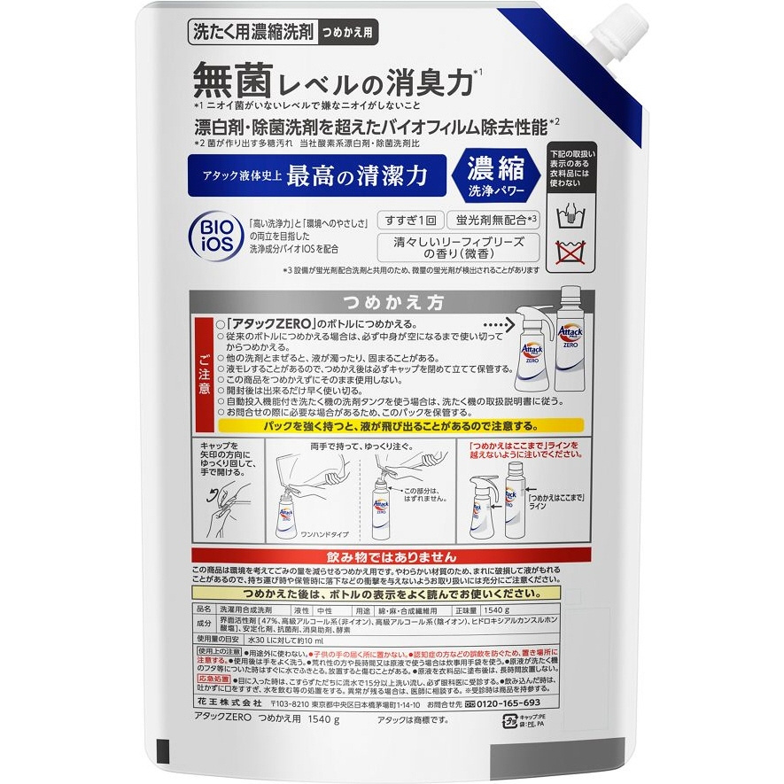 | 商品名 | アタックZERO(ゼロ) つめかえ用 1540g |