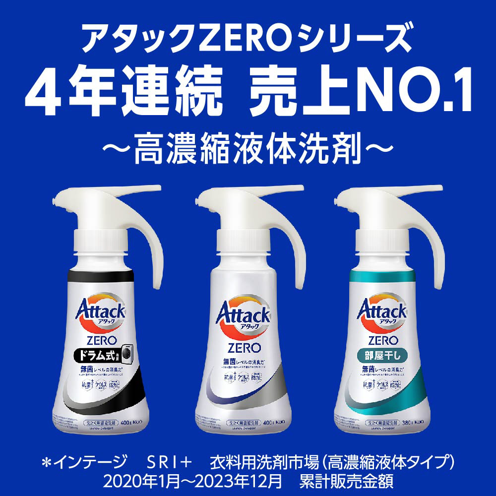 アタック液体史上最高の清潔力。無菌レベルの消臭力。つめかえ用。