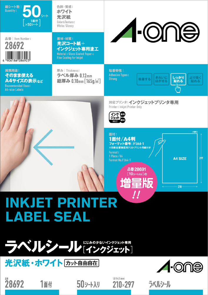 28692 インクジェットプリンタラベル 光沢紙ラベル A4判 ノーカット