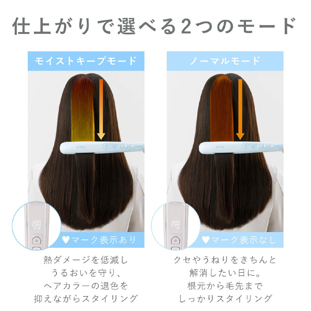 髪のうるおいを守り、ヘアカラーキープ。うるおいに満ちたサラツヤストレートへ導くストレートアイロン。