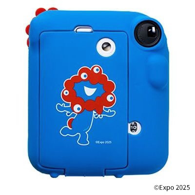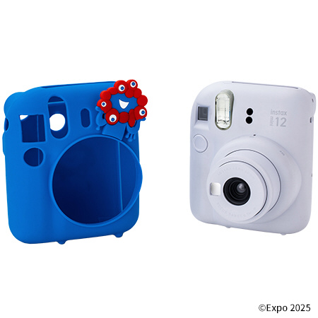 「INSTAX mini 12」に大阪・関西万博公式キャラクター「ミャクミャク」のシリコンケースが付いたセット。