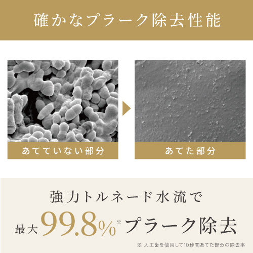 強力トルネード水流で最大99.8%プラーク除去。