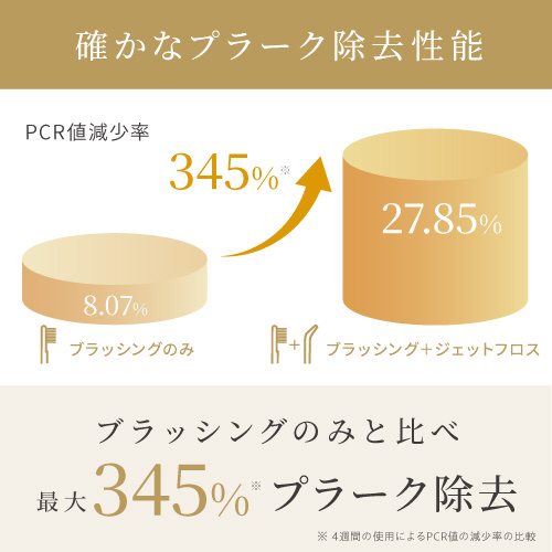 ブラッシングのみと比べ最大345%プラーク除去。