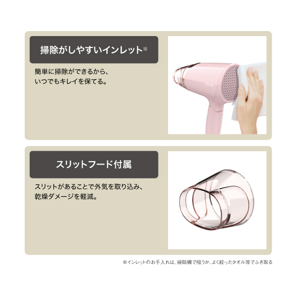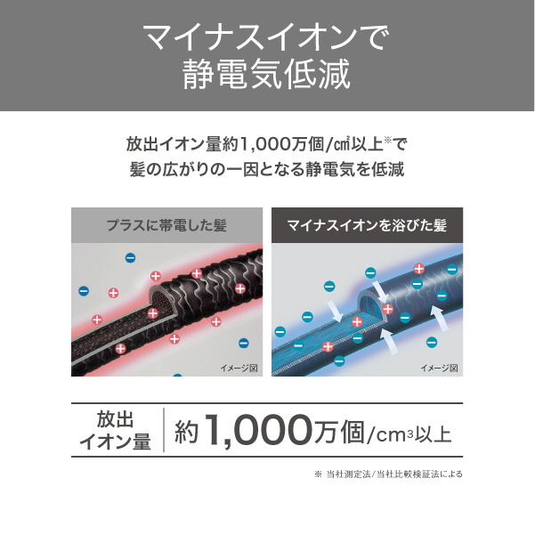 すばやく乾かす大風量とマイナスイオンで髪、まとまる。