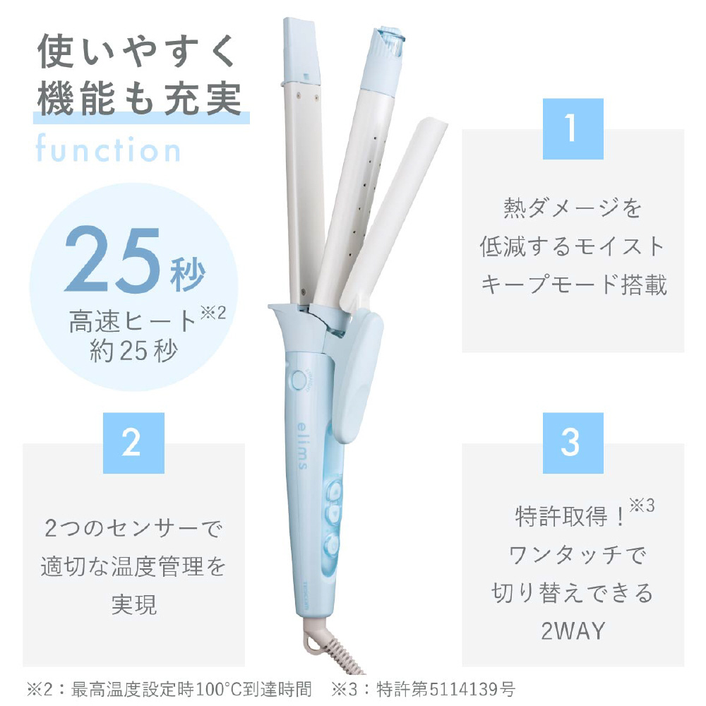 スタイリング中も簡単にストレートとカールをワンタッチで切り替え。使いやすさを追求したテスコム独自の構造です。*特許第5114139号