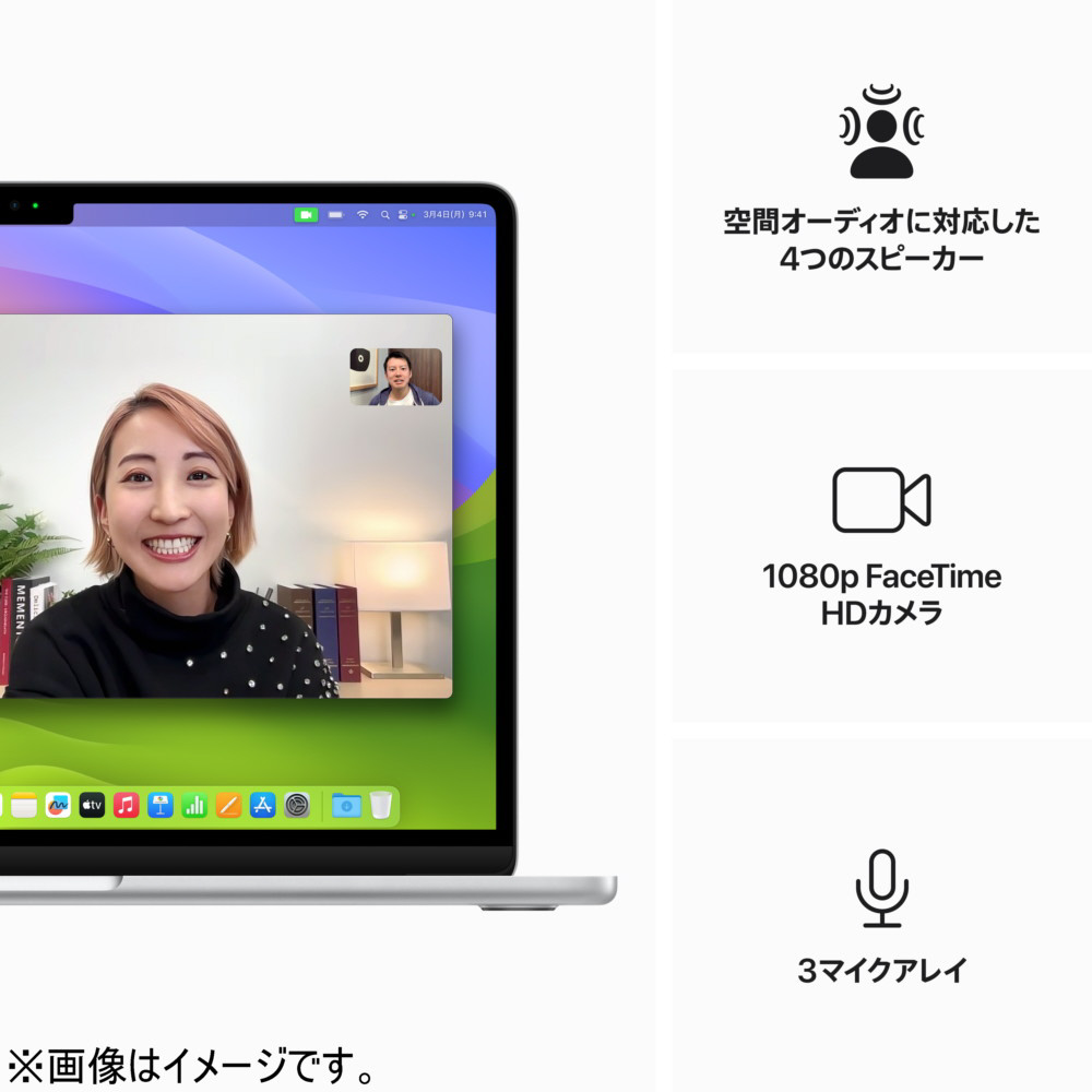 13インチMacBookAir。自由自在のM3世代。M3チップにより、13インチMacBookAirが一段と優れた性能を持ちました。超ポータブルなボディなのに、最大18時間使えるバッテリーを内蔵。仕事も遊びも、好きな場所で好きなように楽しめます。
