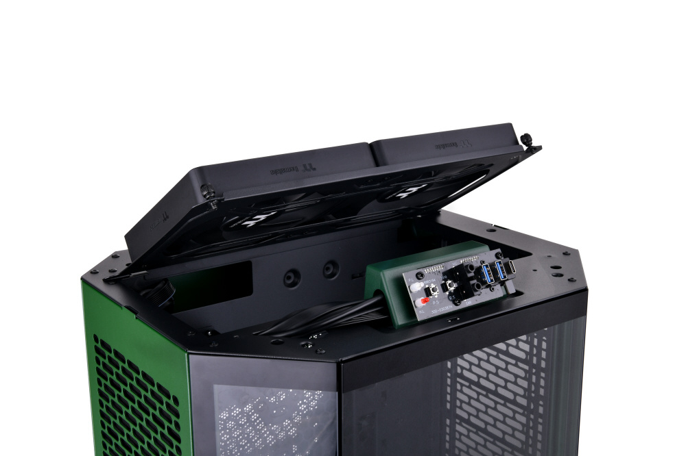 右側面に最大420mmサイズの水冷ラジエーターが取り付け可能となっているほか、最大8基のケースファンの取り付けに対応。前面下部と側面に配置したエアインテークと、上面および背面からの排熱により、効率的なエアフローを構築できます。また、最大400mmの拡張カードが搭載可能となっており、優れた拡張性を実現しています。