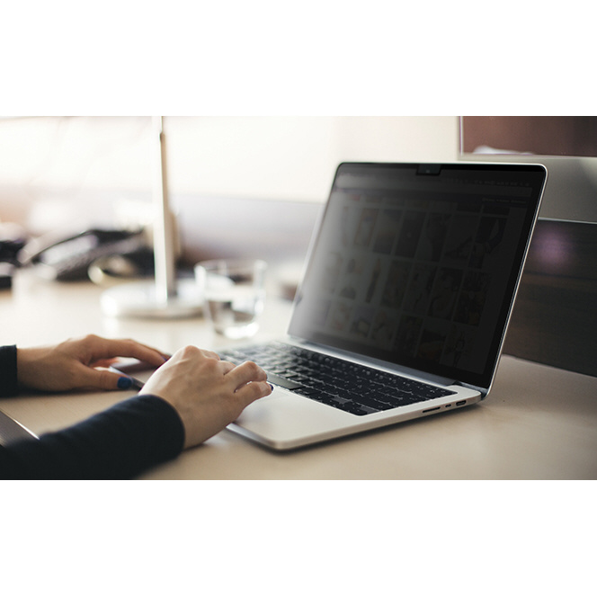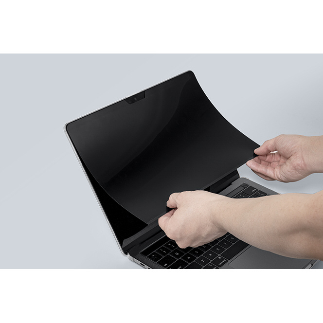 ■PRIME PRIVACY MAGNET は磁気的にスクリーンに取り付けられるため、必要なときにいつでも簡単に貼り付けたり取り外したりできます。
