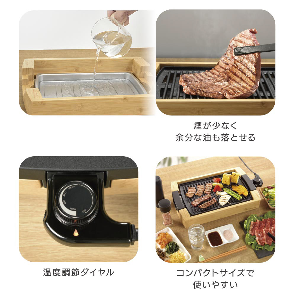 温度調節機能と保温機能付きで、1〜2人での焼肉に最適です。